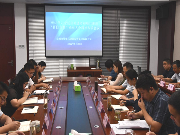 8月22日,集團召開會議傳達學習區(qū)招商選資和項目推進“百日競賽”動員大會精神。