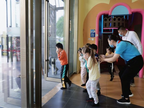 演練包括疫情防控專項(xiàng)演練、消防安全專項(xiàng)演練,以及游客突發(fā)事故應(yīng)急救援演練三部分。消防安全專項(xiàng)演練模擬淘氣堡發(fā)生火情的應(yīng)急處置情況。疫情防控專項(xiàng)演練模擬游客入園未掃場所碼和未佩戴口罩入園等應(yīng)急處置情況。游客突發(fā)事故應(yīng)急救援演練模擬觀光車剎車失靈和游客從高處墜下等應(yīng)急救援工作。