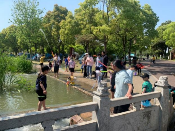園內游人如織,有的在遛娃、戲水、拍照,有的在群藝館觀摩字畫、參觀非遺展覽,有的在月亮廣場欣賞惠民演出,還有人在星空下拉起幕布觀看電影……優(yōu)美宜人的自然景色與豐富多彩的文化景觀為市民帶來了絕佳的出游體驗。